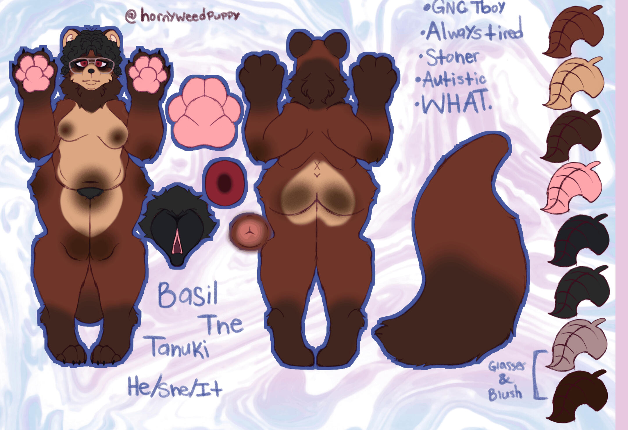 Hi. I'm Basil but you can call me Bas. I'm a GNC Transboy, my pronouns are He/She/It. I primarily draw fat/plus-sized furries; mostly of the trans/LGBTQ+ variety. I also draw feral NSFW occasionally, if that bothers you then stay away from my work. Small fact about me is I'm also an Therian fur; it's a thing that somewhat impacts my art. On the other tabs you'll find my work and ways to find me and my art.